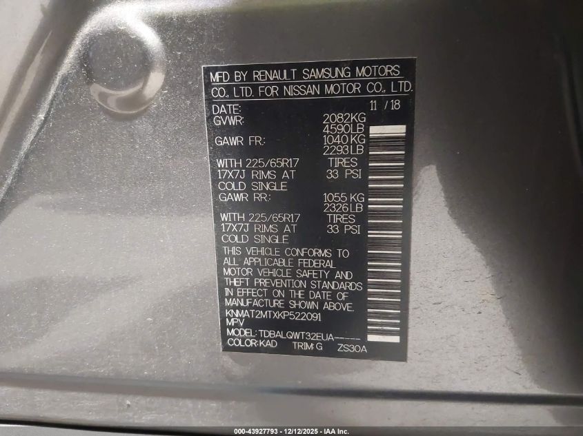 2019 NISSAN ROGUE - KNMAT2MTXKP522091, колір - Сірий, 2.5, Бензин, Передній привід із США
