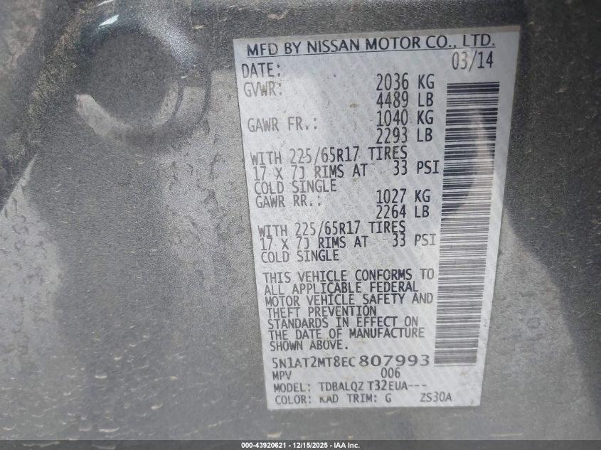 2014 NISSAN ROGUE S