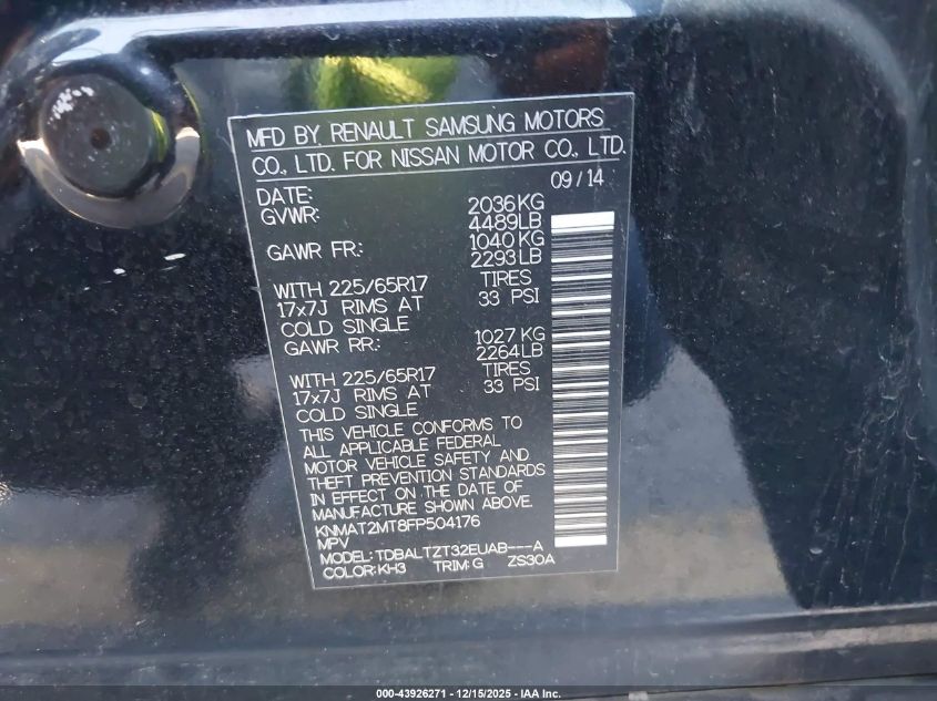 2015 NISSAN ROGUE - KNMAT2MT8FP504176, колір - Чорний, 2.5, Бензин, Передній привід із США