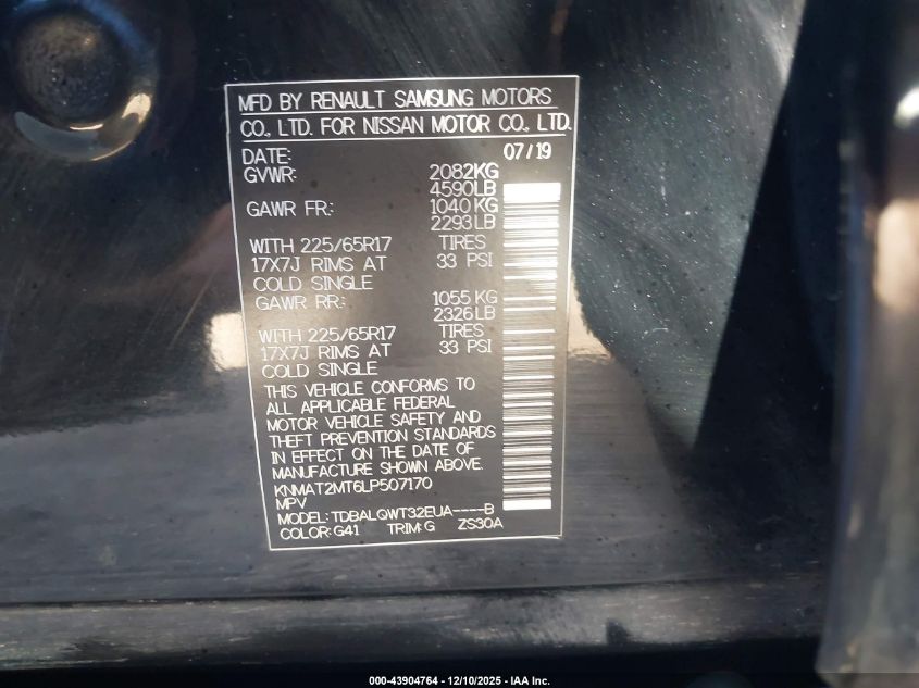 2020 NISSAN ROGUE - KNMAT2MT6LP507170, колір - Чорний, 2.5, Бензин, Передній привід із США