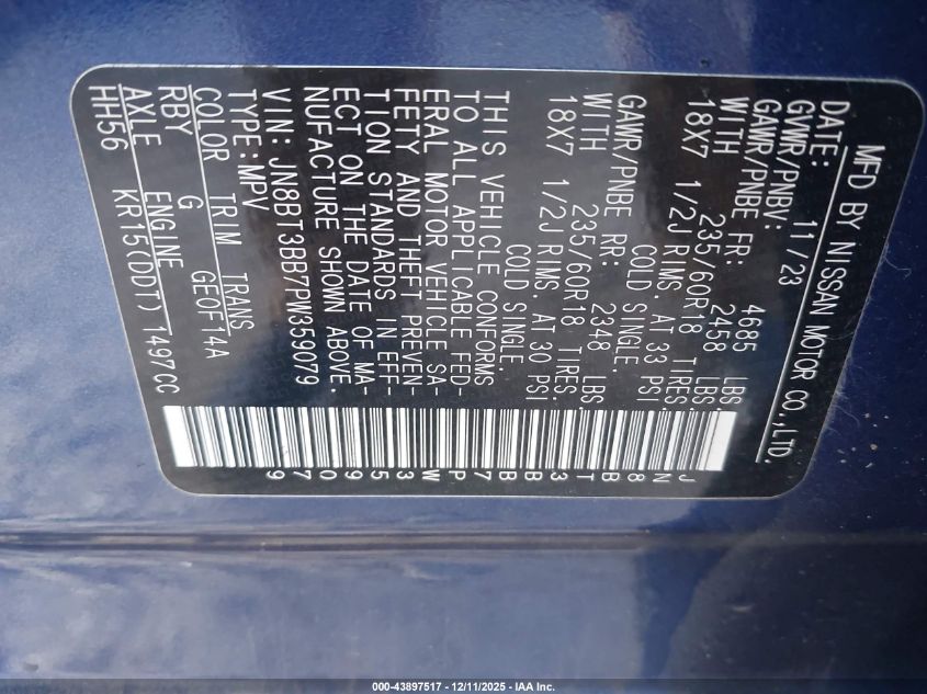 2023 NISSAN ROGUE - JN8BT3BB7PW359079, колір - Синій, 1.5, Бензин, Повний привід із США