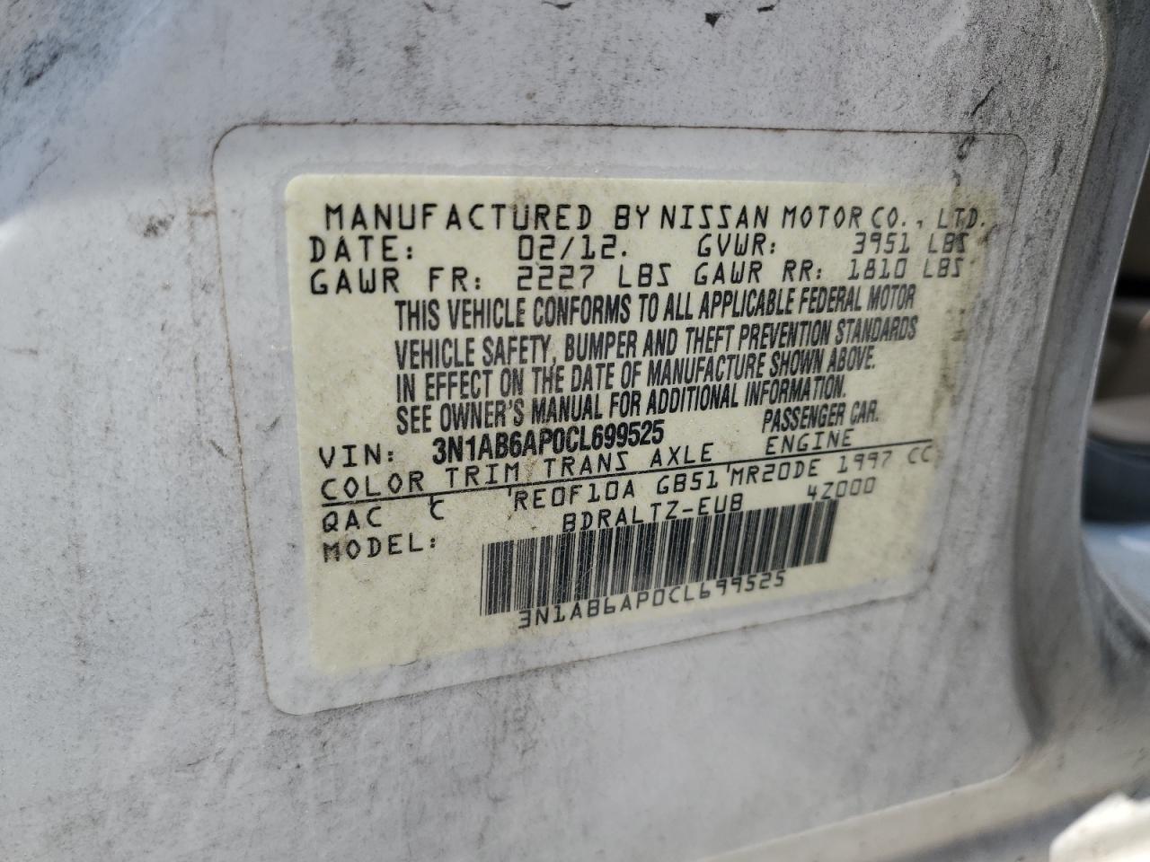 2012 NISSAN SENTRA - 3N1AB6AP0CL699525, колір - Білий, 2.0, Бензин, із США
