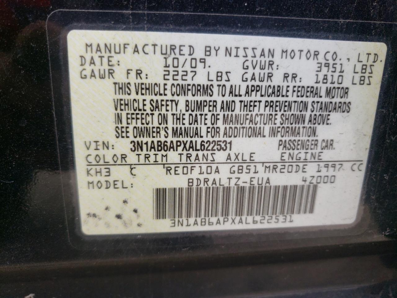 2010 NISSAN SENTRA - 3N1AB6APXAL622531, колір - Чорний, 2.0, Бензин, із США