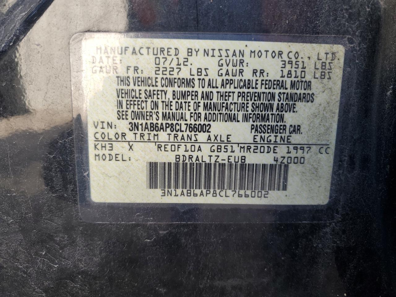 2012 NISSAN SENTRA - 3N1AB6AP8CL766002, колір - Чорний, 2.0, Бензин, із США