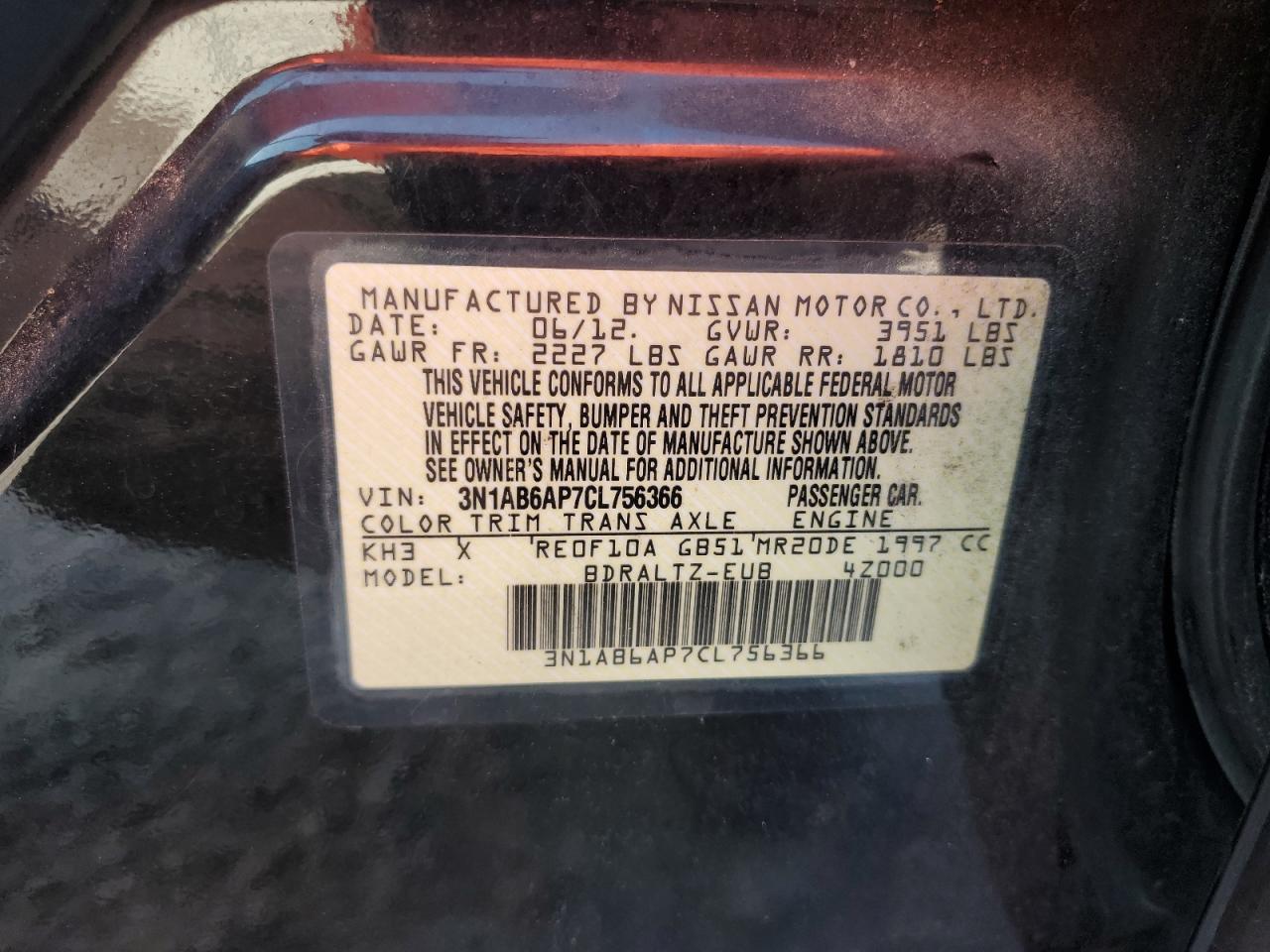 Колір ЧорнийЦиліндри 4VIN 3N1AB6AP7CL756366Стан НевідомоУшкодження НезначніДата аукціона 2025-10-07