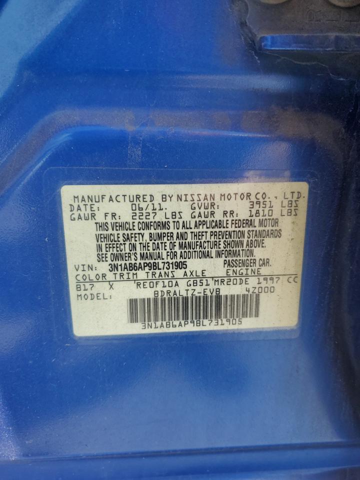 2011 NISSAN SENTRA - 3N1AB6AP9BL731905, колір - Синій, 2.0, Бензин, із США