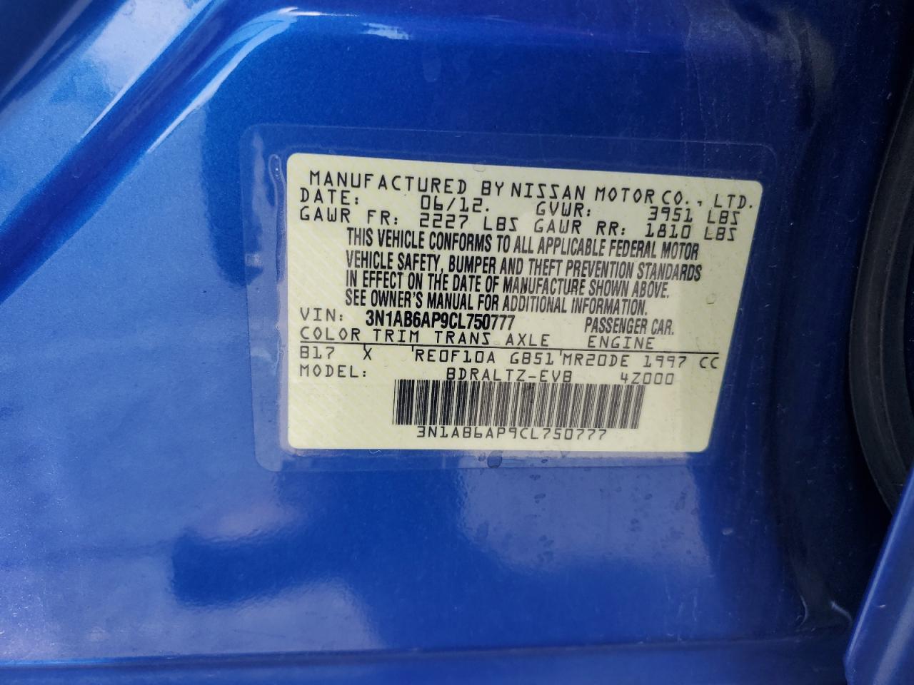 Колір СинійЦиліндри 4VIN 3N1AB6AP9CL750777Стан Заводиться та їде (перевірено)Ушкодження Передня або задня