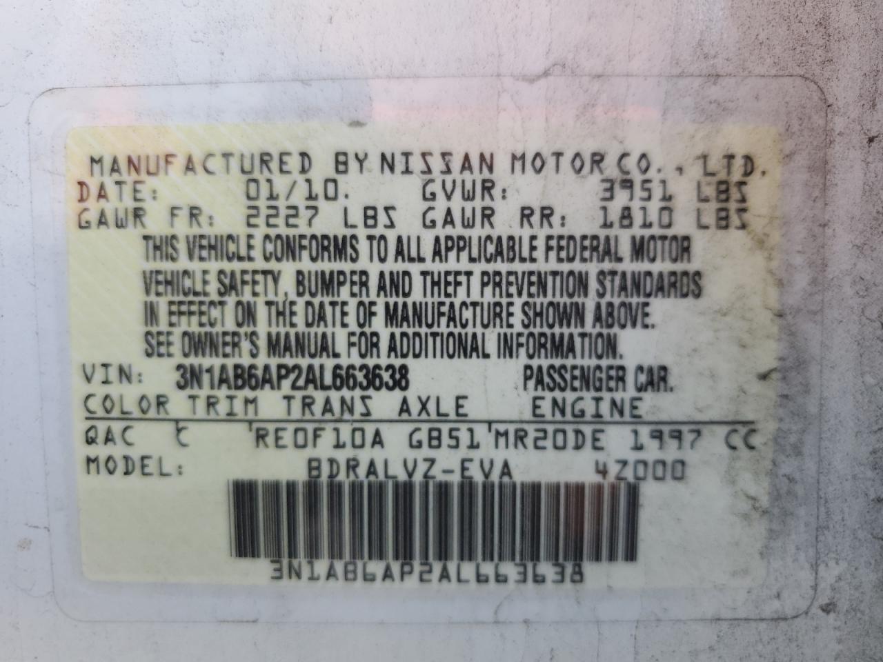 2010 NISSAN SENTRA - 3N1AB6AP2AL663638, колір - Білий, 2.0, Бензин, із США