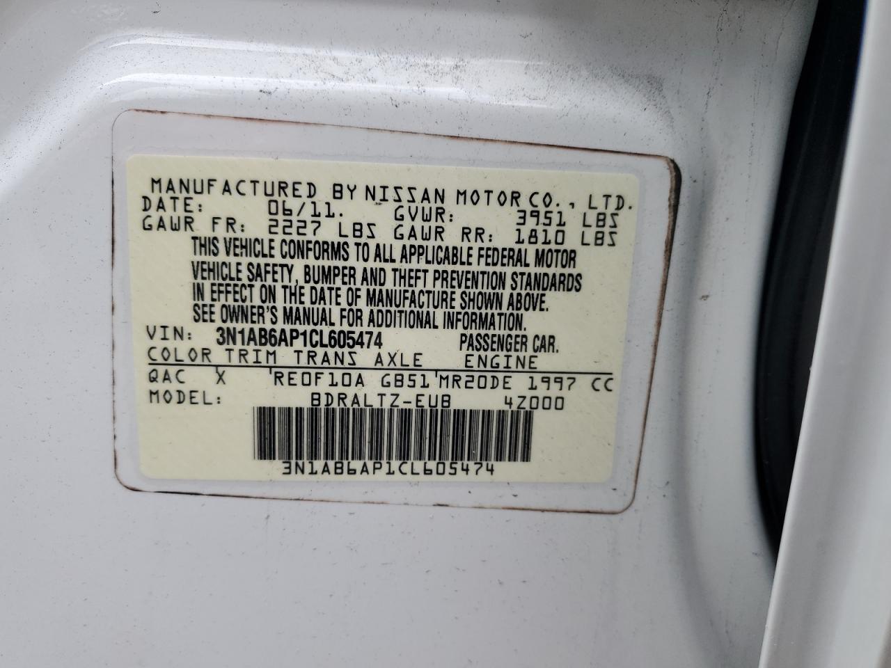 2012 NISSAN SENTRA - 3N1AB6AP1CL605474, колір - Білий, 2.0, Бензин, із США