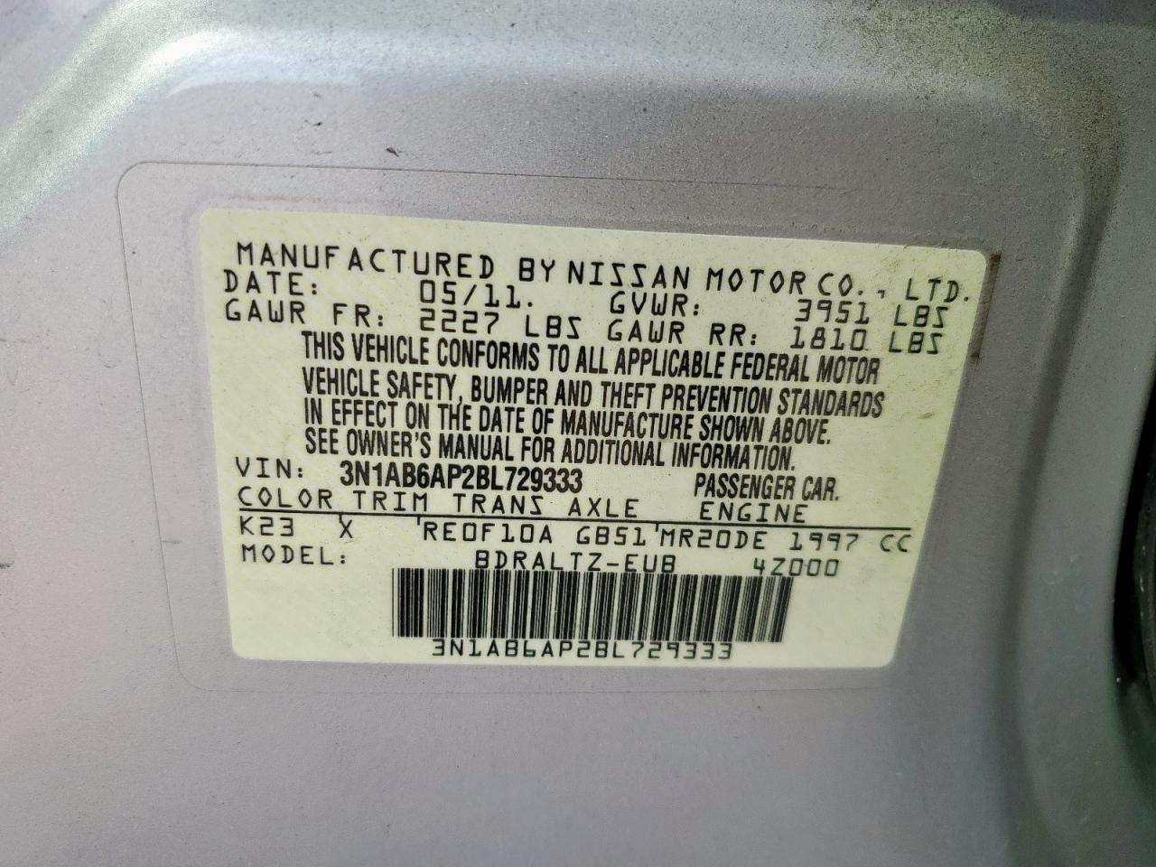2011 NISSAN SENTRA - 3N1AB6AP2BL729333, колір - Срібний, 2.0, Бензин, із США