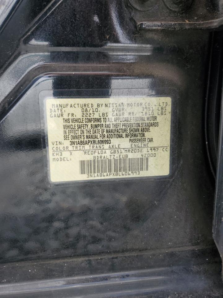 2011 NISSAN SENTRA - 3N1AB6APXBL606993, колір - Чорний, 2.0, Бензин, із США