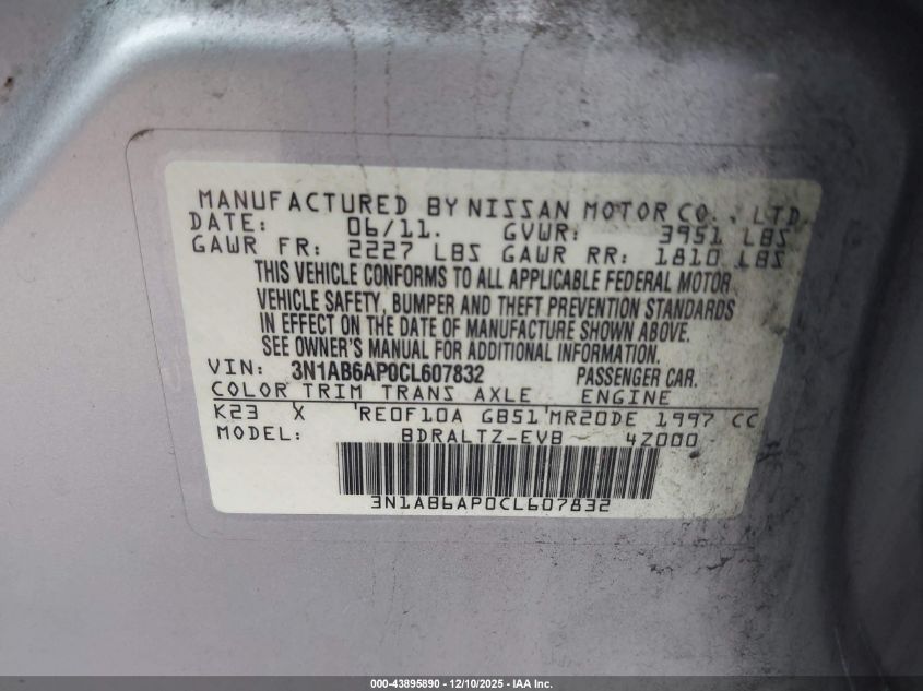Колір СрібнийЦиліндри 4Привід Передній привідVIN 3N1AB6AP0CL607832Стан Заводиться та їде (перевірено)Ушкодження Ліва сторона