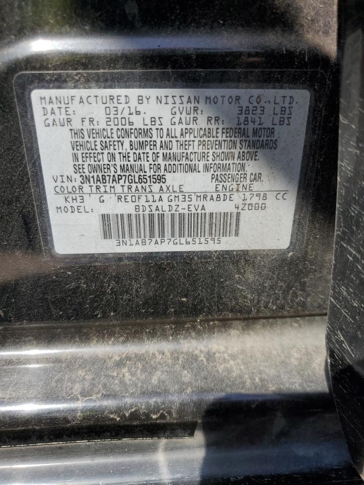 2016 NISSAN SENTRA - 3N1AB7AP7GL651595, колір - Чорний, 1.8, Бензин, із США