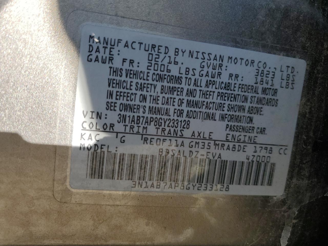 2016 NISSAN SENTRA - 3N1AB7AP8GY233128, колір - Сірий, 1.8, Бензин, із США