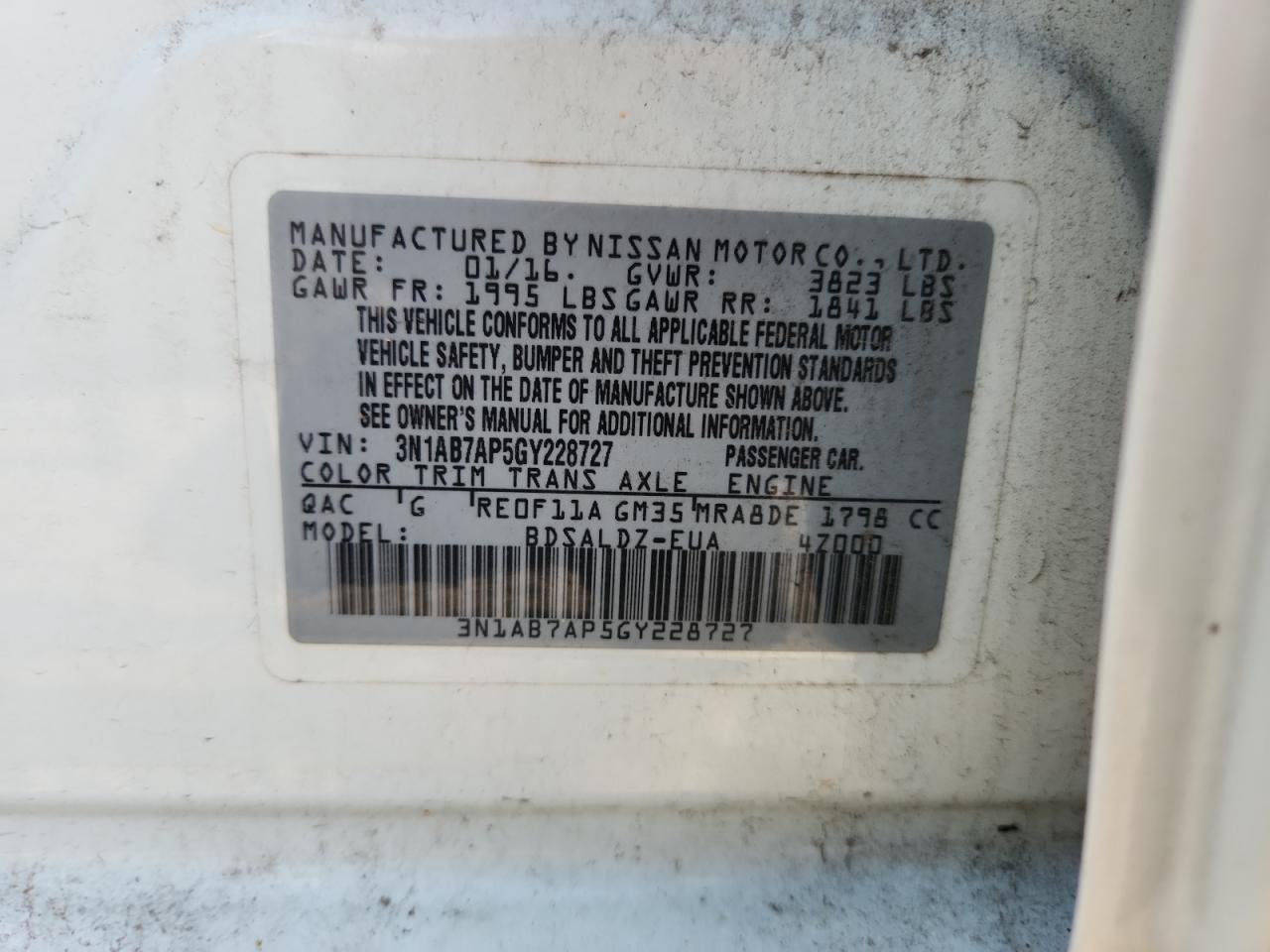 2016 NISSAN SENTRA - 3N1AB7AP5GY228727, колір - Білий, 1.8, Бензин, із США