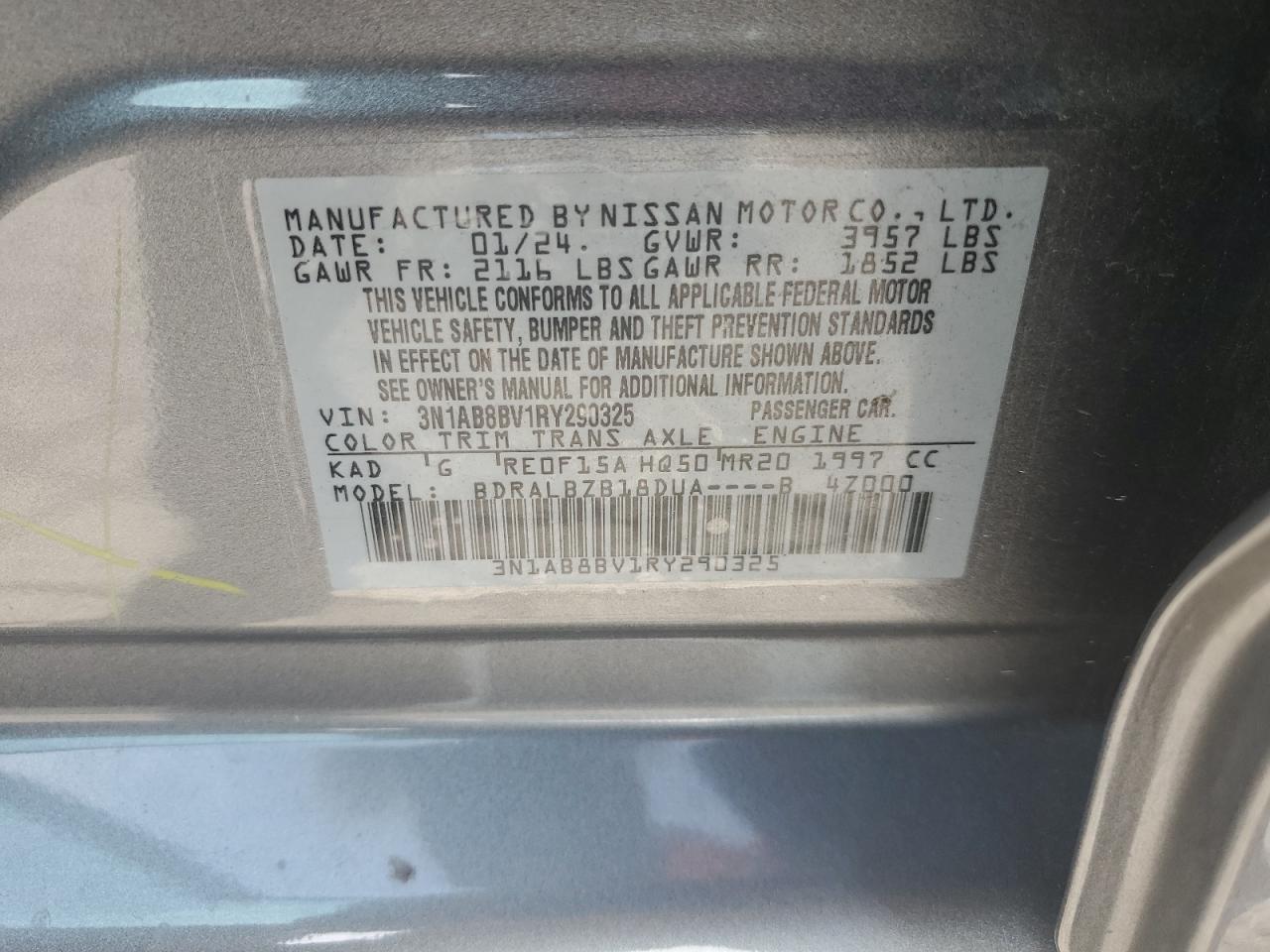 2024 NISSAN SENTRA - 3N1AB8BV1RY290325, колір - Сірий, 2.0, Бензин, із США