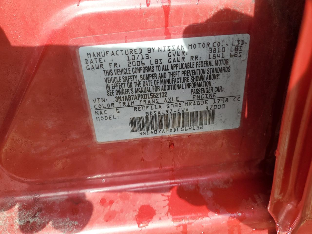 Колір БордовийЦиліндри 4VIN 3N1AB7APXDL562132Стан Заводиться та їде (перевірено)Ушкодження НезначніДата аукціона 2025-10-06