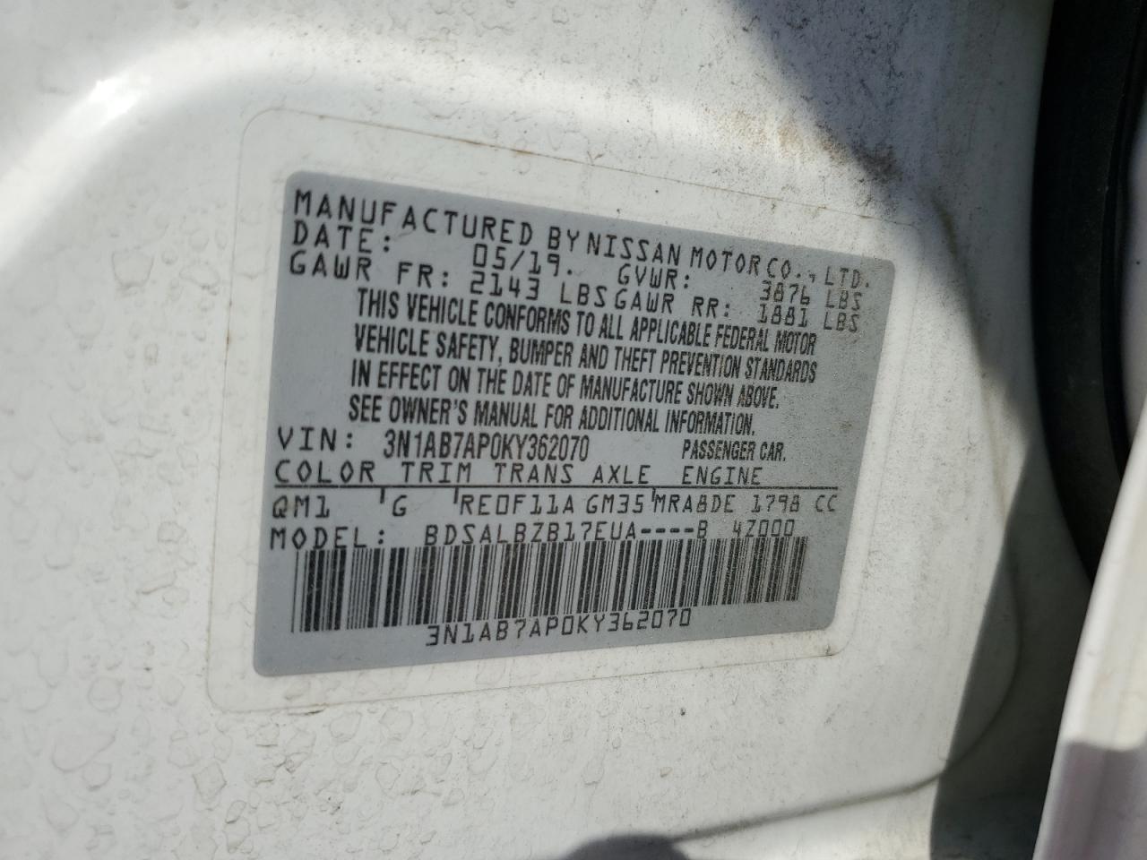 2019 NISSAN SENTRA - 3N1AB7AP0KY362070, колір - Білий, 1.8, Бензин, із США
