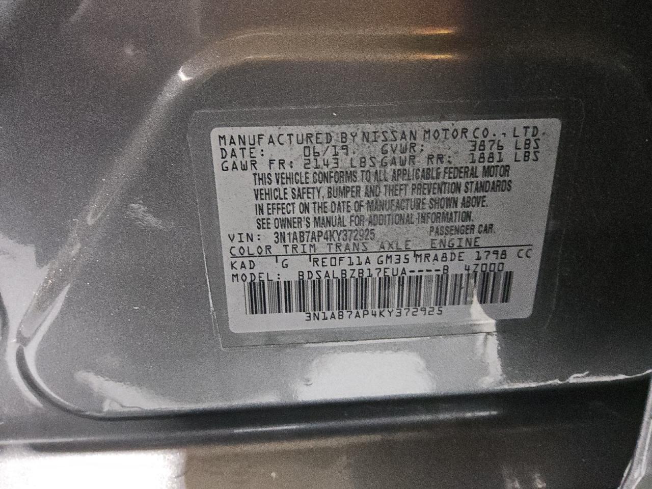 2019 NISSAN SENTRA - 3N1AB7AP4KY372925, колір - Сірий, 1.8, Бензин, із США
