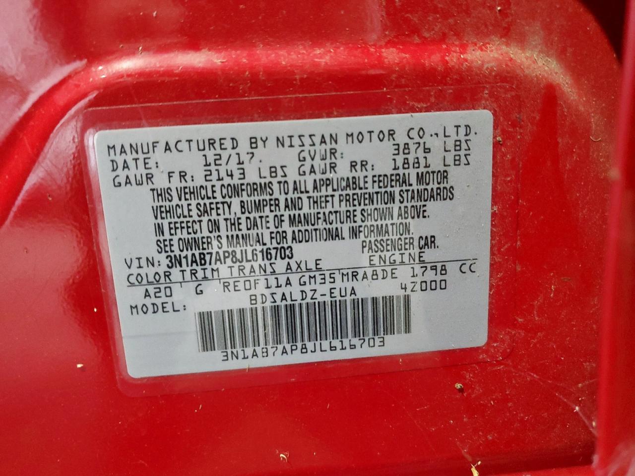 2018 NISSAN SENTRA - 3N1AB7AP8JL616703, колір - Червоний, 1.8, Бензин, із США