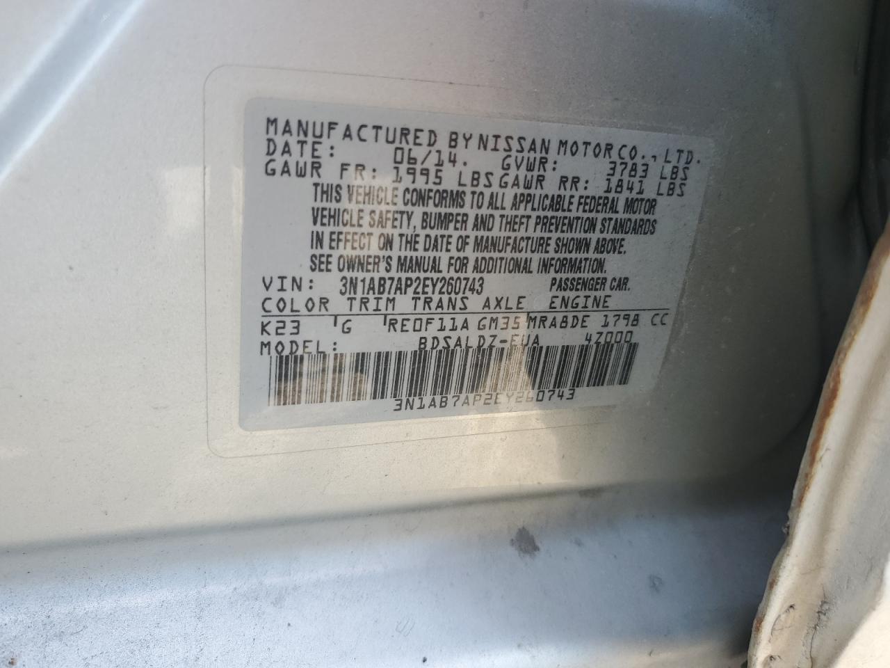 Колір СрібнийЦиліндри 4VIN 3N1AB7AP2EY260743Стан Заводиться та їде (перевірено)Ушкодження НезначніДата аукціона 2025-10-08