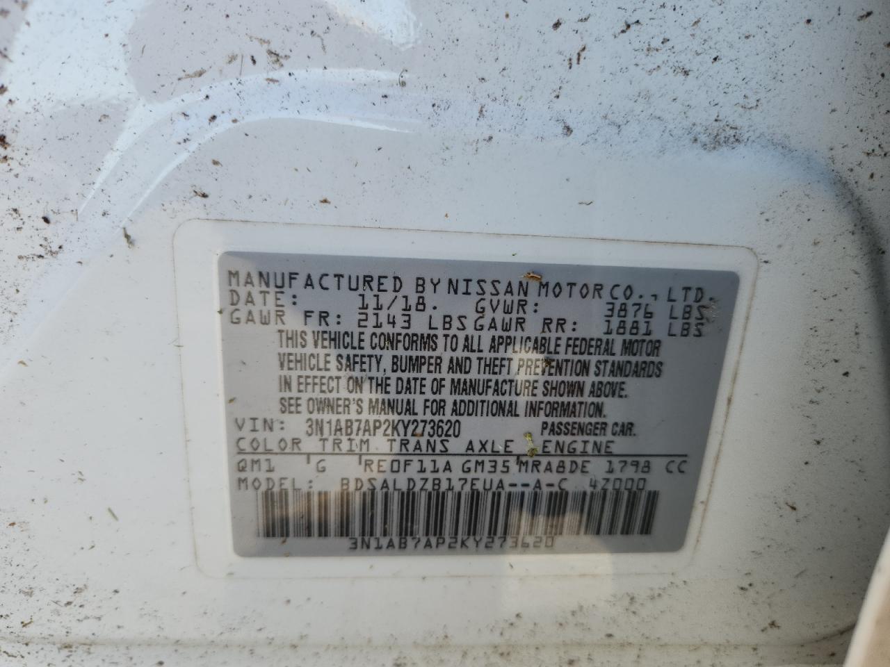 2019 NISSAN SENTRA - 3N1AB7AP2KY273620, колір - Білий, 1.8, Бензин, із США