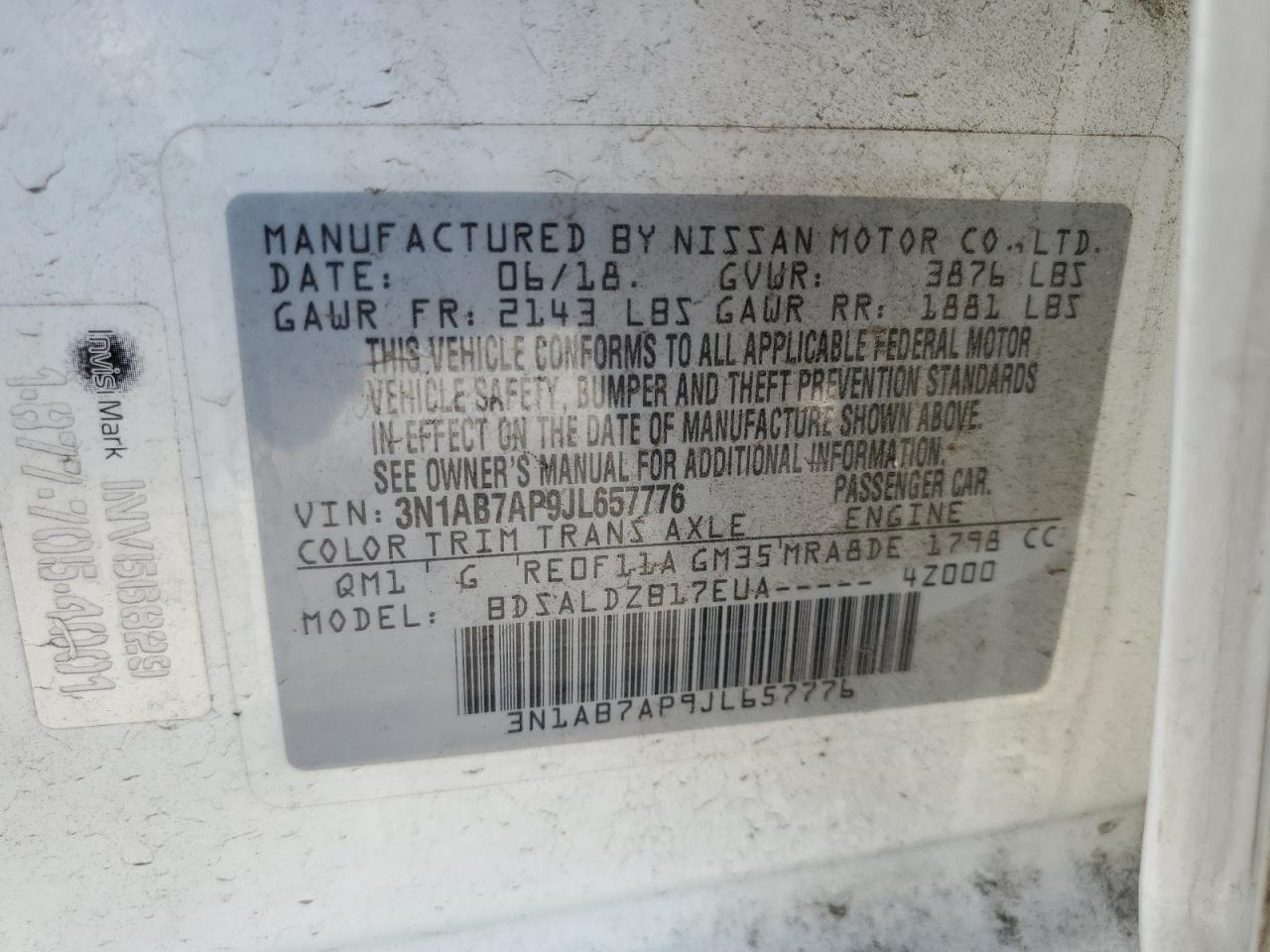 Колір БілийЦиліндри 4VIN 3N1AB7AP9JL657776Стан ЗаводитьсяУшкодження По всьому автоДата аукціона 2025-10-06