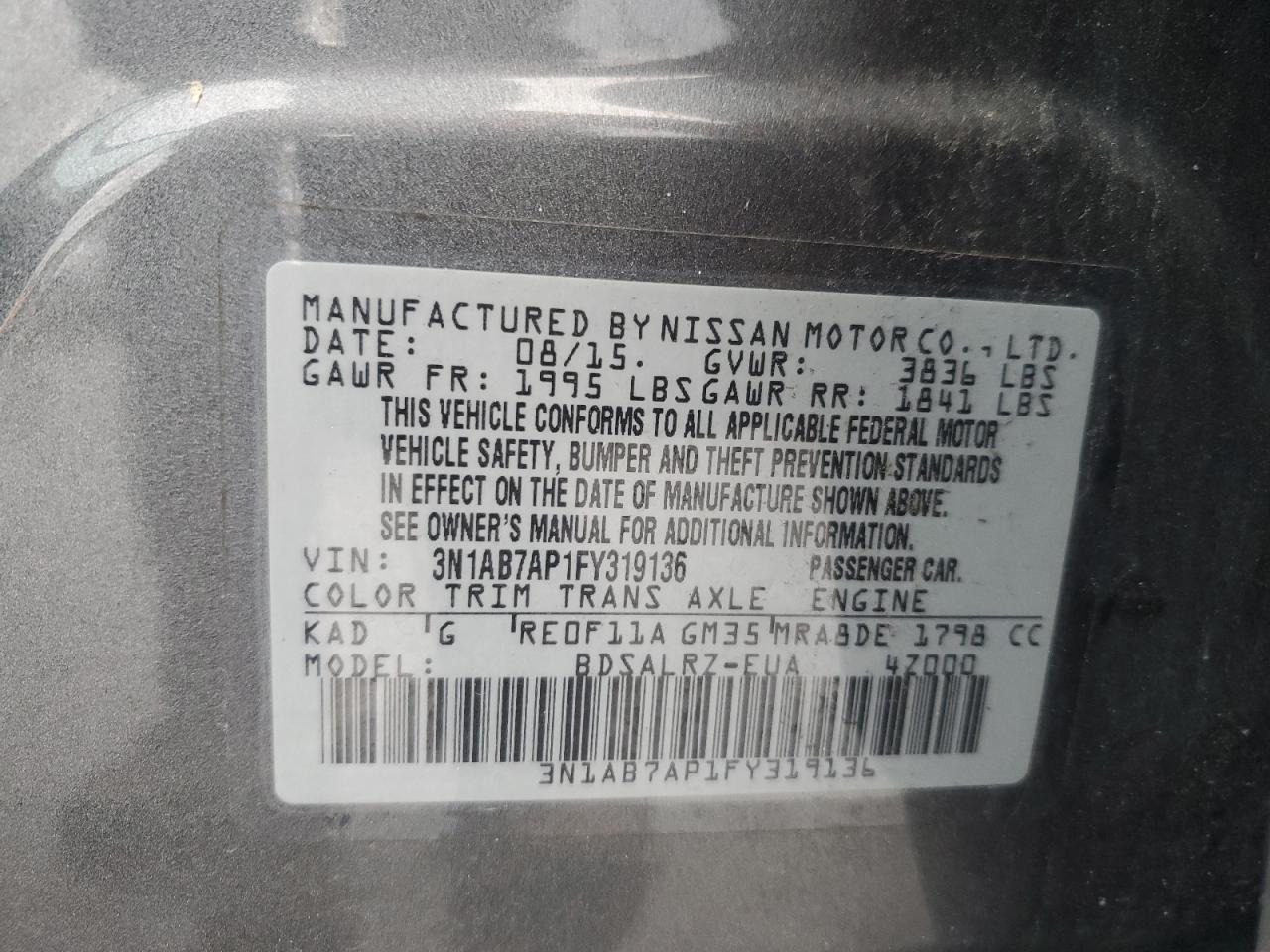 2015 NISSAN SENTRA - 3N1AB7AP1FY319136, колір - Сірий, 1.8, Бензин, із США