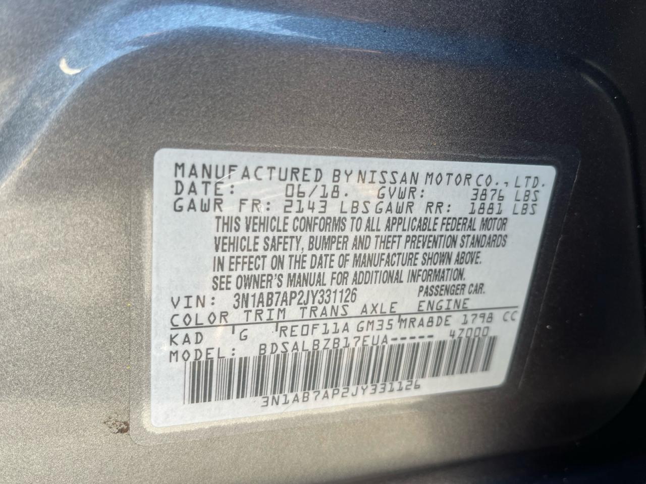 2018 NISSAN SENTRA - 3N1AB7AP2JY331126, колір - Сірий, 1.8, Бензин, із США