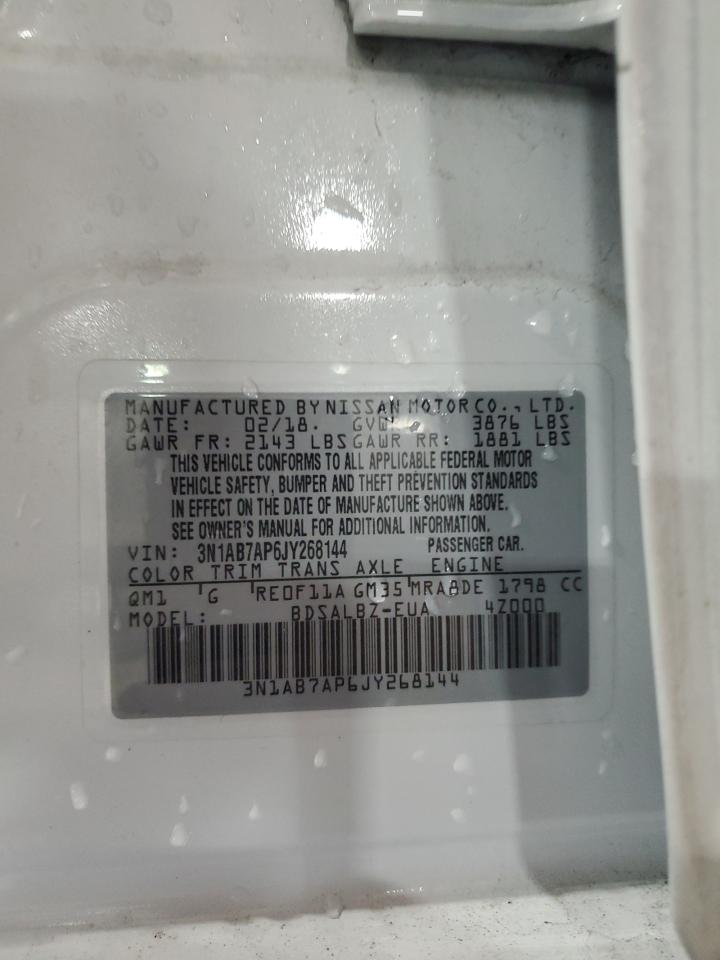 2018 NISSAN SENTRA - 3N1AB7AP6JY268144, колір - Білий, 1.8, Бензин, із США