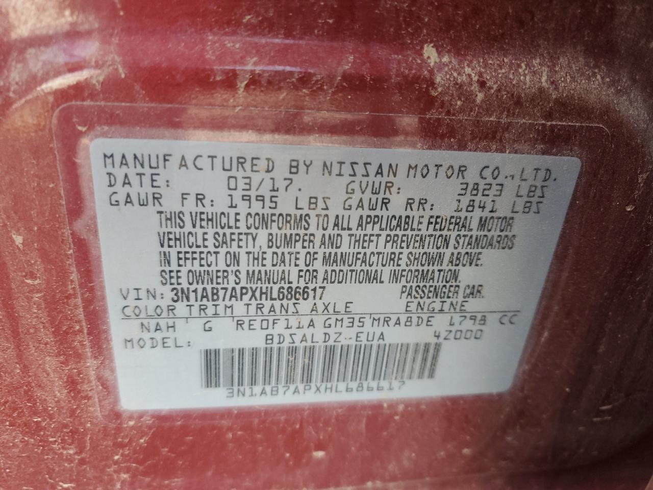 2017 NISSAN SENTRA - 3N1AB7APXHL686617, колір - Бургундія, 1.8, Бензин, із США