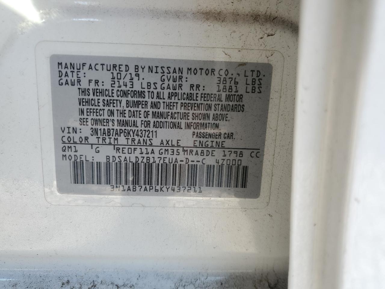 2019 NISSAN SENTRA - 3N1AB7AP6KY437211, колір - Білий, 1.8, Бензин, із США