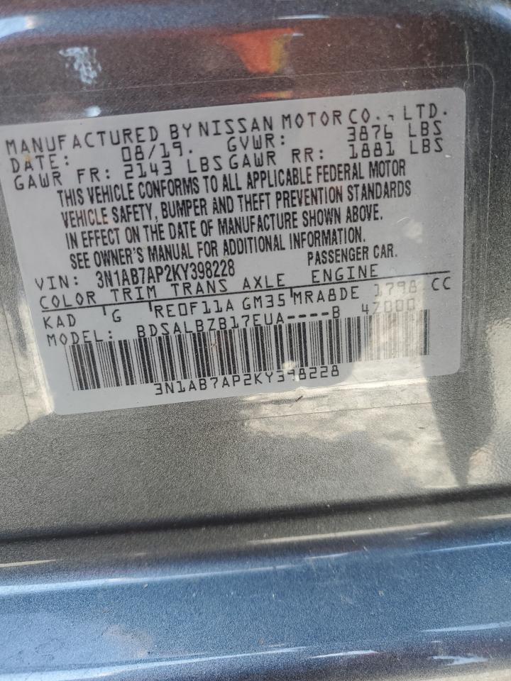 2019 NISSAN SENTRA - 3N1AB7AP2KY398228, колір - Срібний, 1.8, Бензин, із США