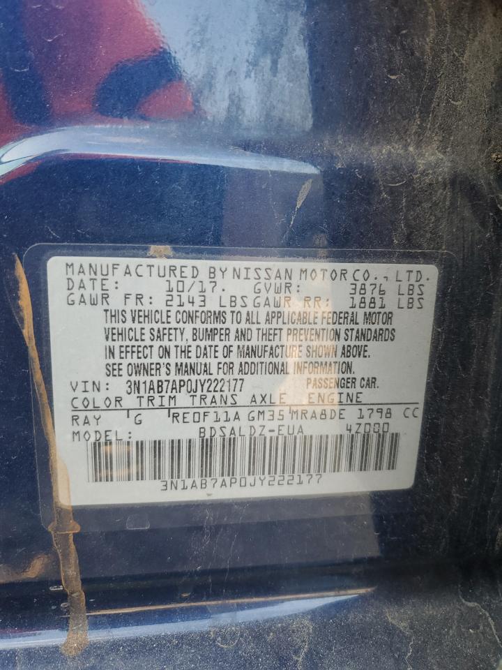 2018 NISSAN SENTRA - 3N1AB7AP0JY222177, колір - Синій, 1.8, Бензин, із США