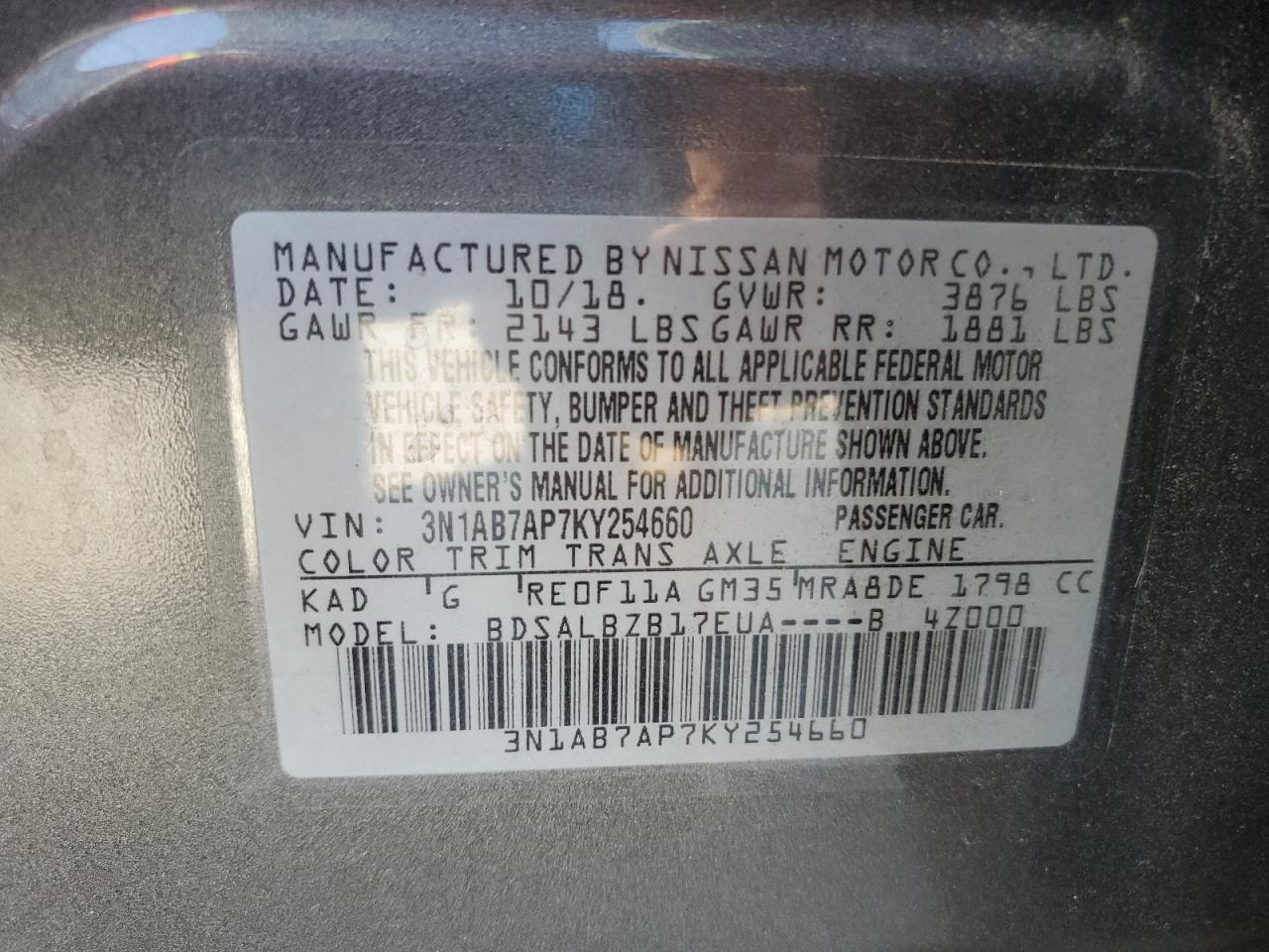 2019 NISSAN SENTRA - 3N1AB7AP7KY254660, колір - Сірий, 1.8, Бензин, із США