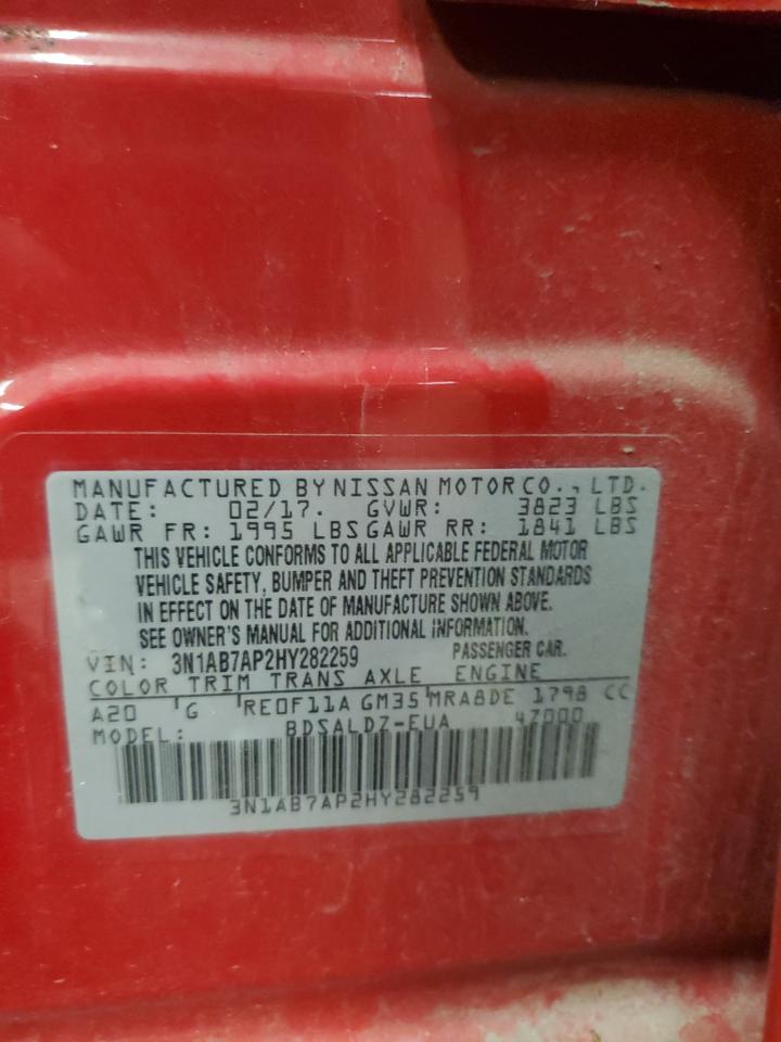 2017 NISSAN SENTRA - 3N1AB7AP2HY282259, колір - Червоний, 1.8, Бензин, із США