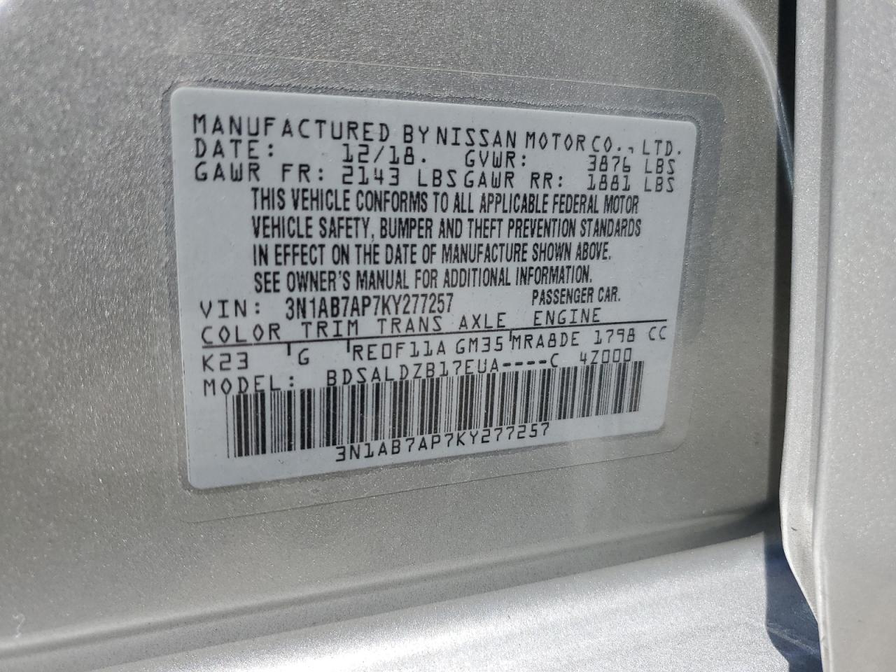 2019 NISSAN SENTRA - 3N1AB7AP7KY277257, колір - Срібний, 1.8, Бензин, із США