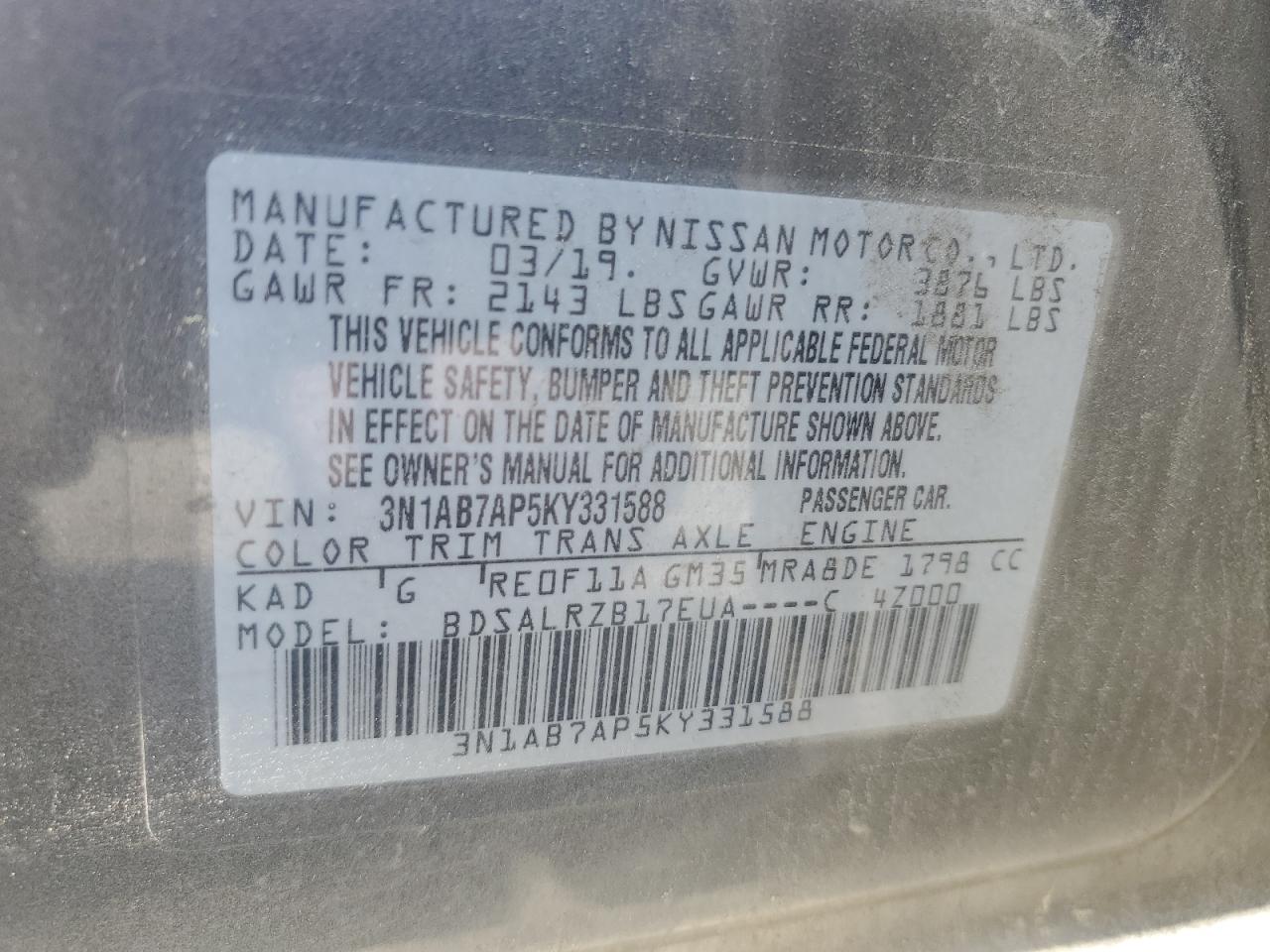 2019 NISSAN SENTRA - 3N1AB7AP5KY331588, колір - Сірий, 1.8, Бензин, із США