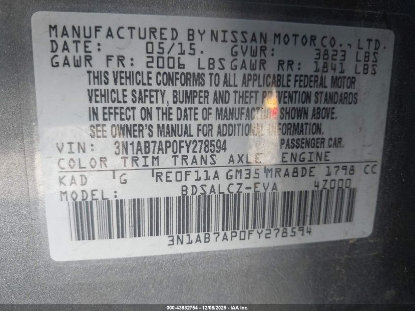 Колір СірийЦиліндри 4Привід Передній привідVIN 3N1AB7AP0FY278594Стан Заводиться та їде (перевірено)Ушкодження Задня ліва