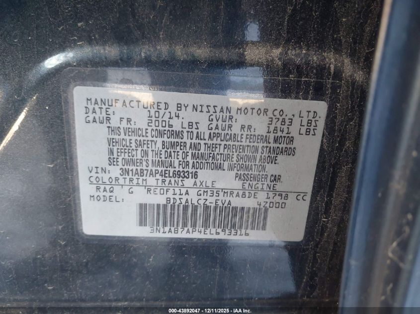 2014 NISSAN SENTRA - 3N1AB7AP4EL693316, колір - Бірюзовий, 1.8, Бензин, Передній привід із США