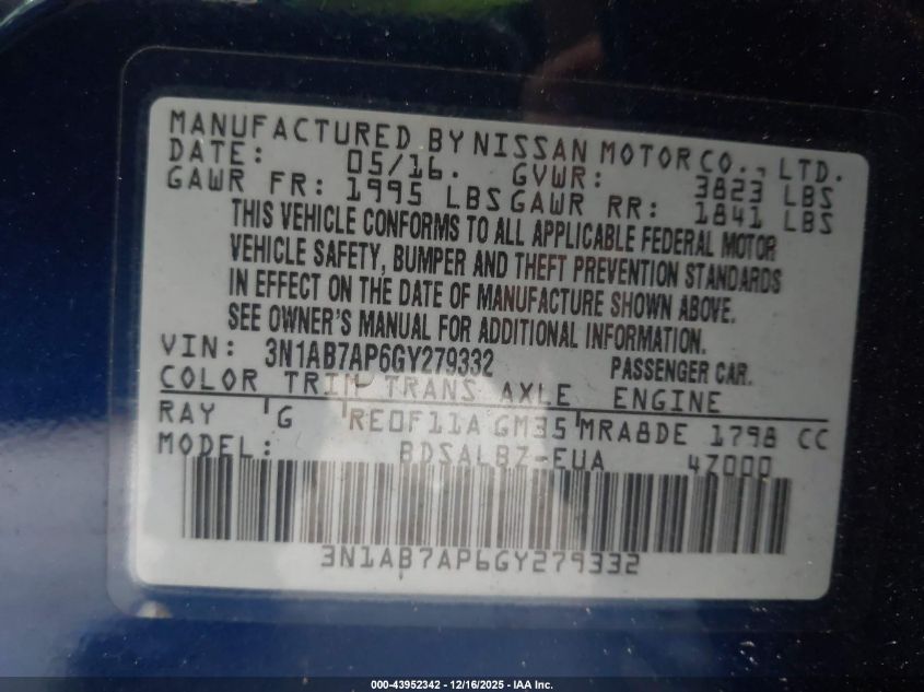 2016 NISSAN SENTRA S