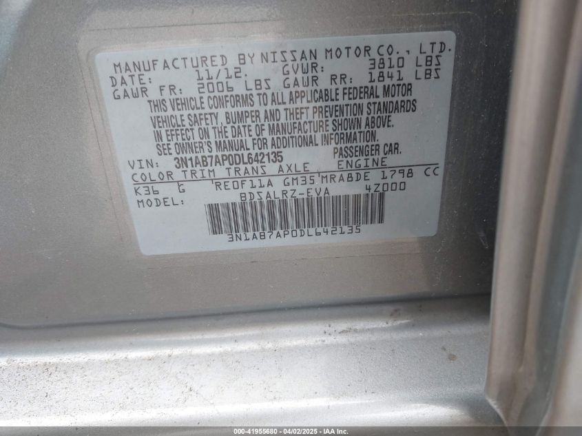 Колір СірийЦиліндри 4Привід Передній привідVIN 3N1AB7AP0DL642135Стан СтаціонарноУшкодження Передня або задня