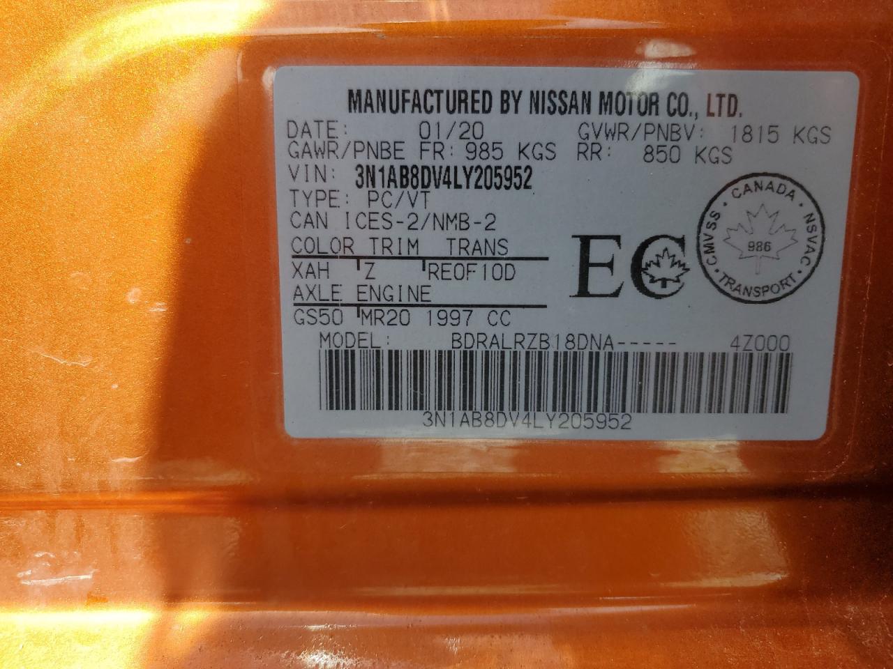 2020 NISSAN SENTRA - 3N1AB8DV4LY205952, колір - Апельсиновий, 2.0, Бензин, із США
