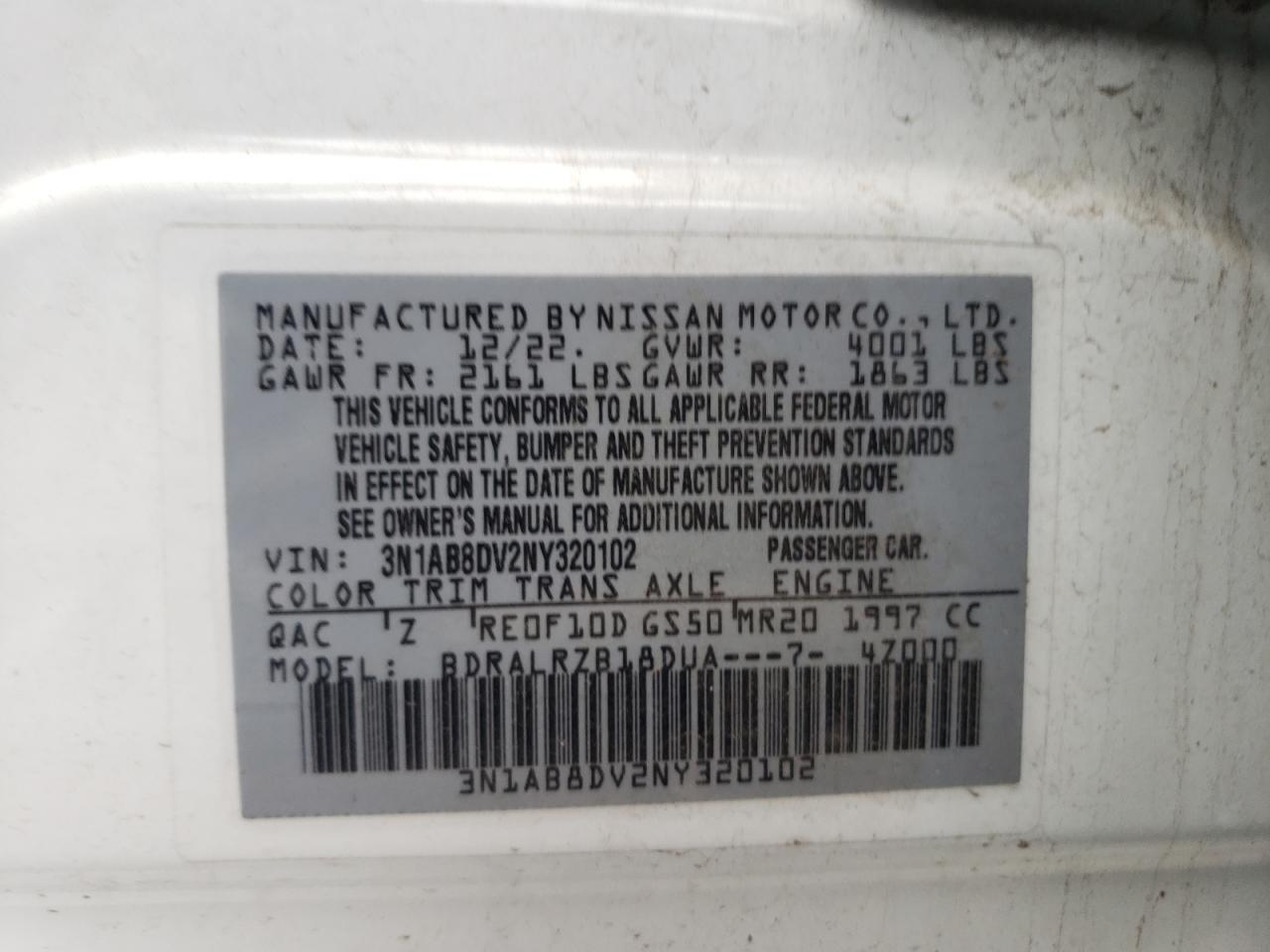 2022 NISSAN SENTRA - 3N1AB8DV2NY320102, колір - Білий, 2.0, Бензин, із США
