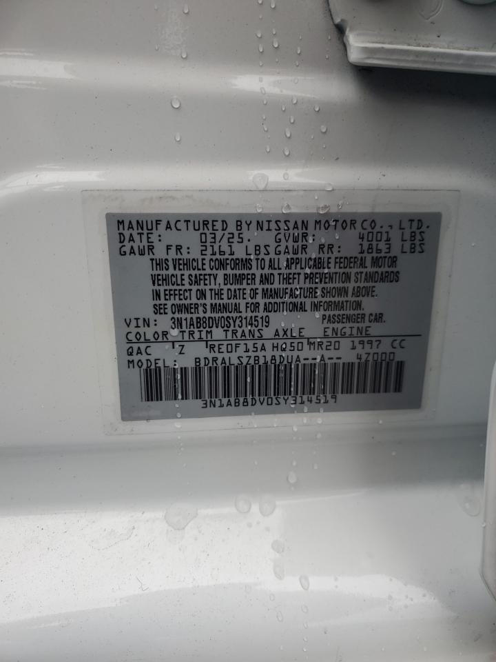 2025 NISSAN SENTRA - 3N1AB8DV0SY314519, колір - Білий, 2.0, Бензин, із США