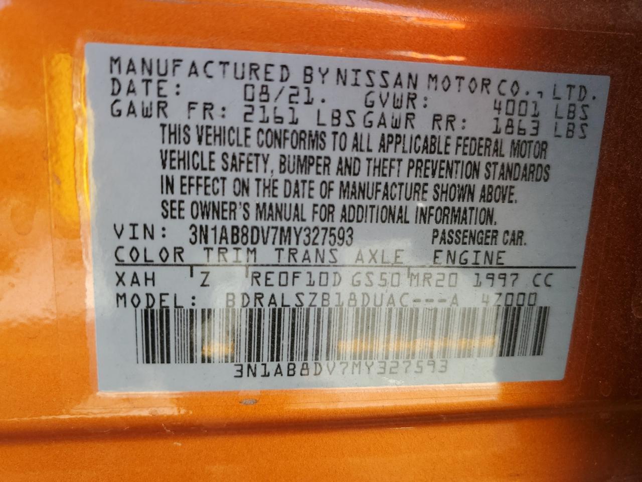 2021 NISSAN SENTRA - 3N1AB8DV7MY327593, колір - Апельсиновий, 2.0, Бензин, із США