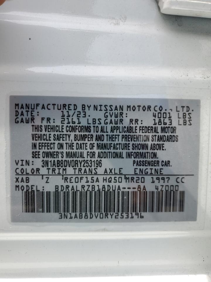 2024 NISSAN SENTRA - 3N1AB8DV0RY253196, колір - Білий, 2.0, Бензин, із США