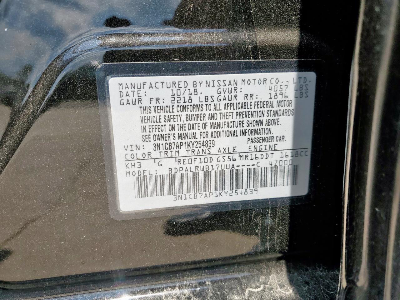 2019 NISSAN SENTRA - 3N1CB7AP1KY254839, колір - Чорний, 1.6, Бензин, із США