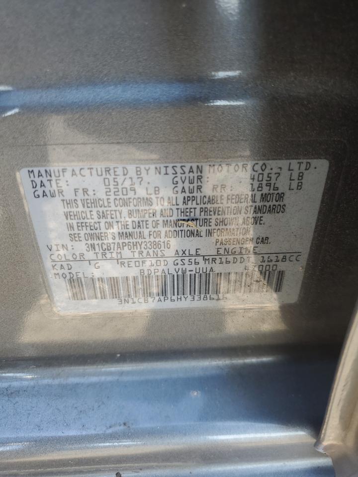 2017 NISSAN SENTRA - 3N1CB7AP6HY338616, колір - Сірий, 1.6, Бензин, із США
