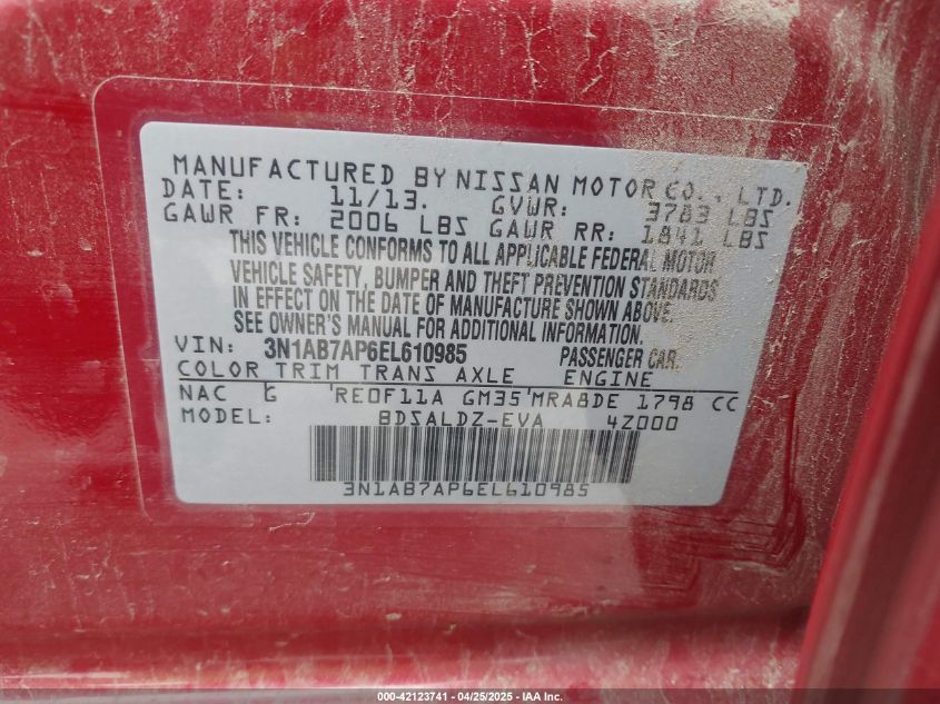 2014 NISSAN SENTRA - 3N1AB7AP6EL610985, колір - Червоний, 1.8, Бензин, Передній привід із США